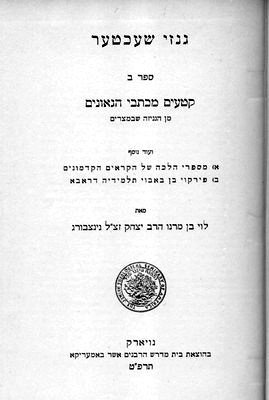 גנזי שכטר, ספר ב': קטעים מכתבי הגאונים מן הגניזה שבמצרים ועוד נוסף א) מספרי הלכה של הקראים הקדמונים, ב) פירקוי בן באבוי תלמידיה דראבא.
