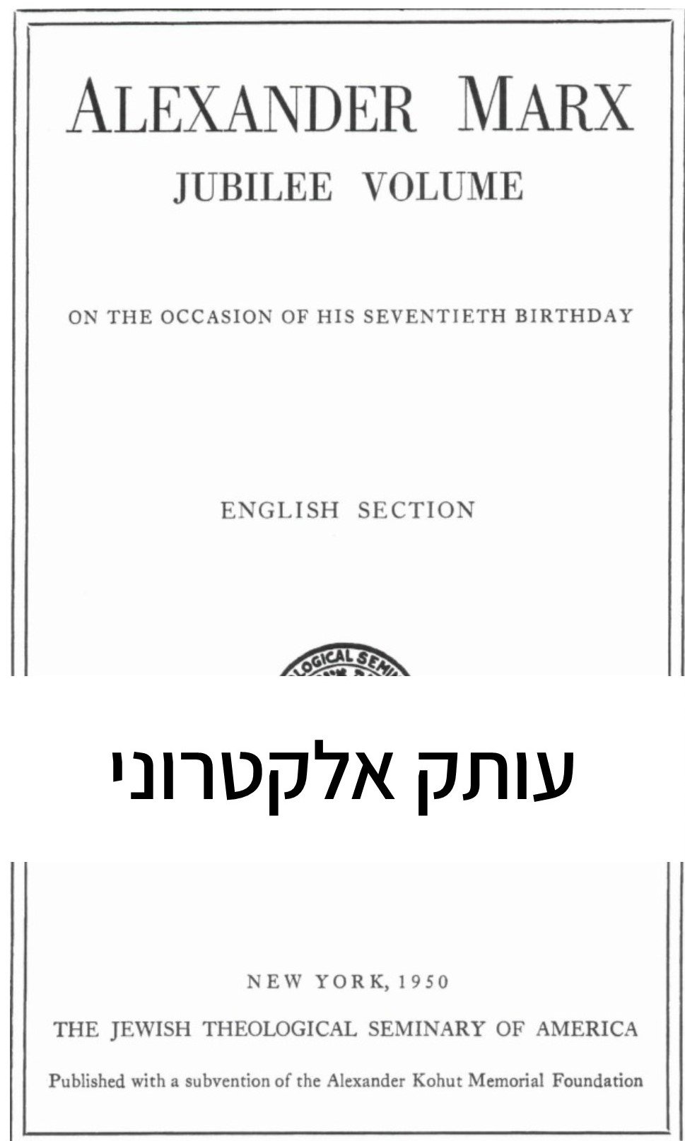 כמות של ספר היובל לכבוד אלכסנדר מארכס - חלק אנגלי