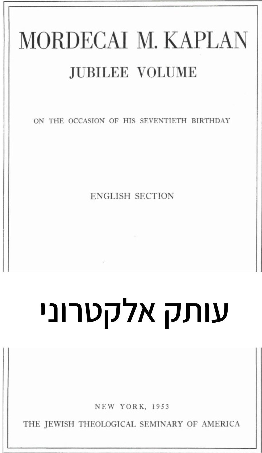 כמות של ספר היובל לכבוד מרדכי מנחם קפלן - חלק אנגלי