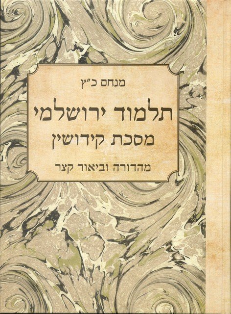 ספר זה מגיש בפני הקורא מהדורה ביקורתית של מסכת קידושין. המהדורה כוללת את נוסח הירושלמי עם תיקונים, מחולק לסוגיות ומפוסק, בלוויית ביאור קצר, הפניה למקבילות בספרות חז"ל ולמובאות בספרות רבנית, והעתקה משווה (סינופסיס) על פי עדי הנוסח הישירים והמקבילות בירושלמי. מבנה המהדורה ועיצובה מבקשים, בין היתר, להצביע על מאפייני התלמוד הירושלמי כיצירה עיונית וספרותית גם יחד. הצגת נוסח המסכת המדויק, עמידה על גלגוליו השונים במסירתו, והביאור הקצר הנלווה אליו, מספקים לקורא תשתית נוחה ללימוד מעמיק של המסכת.